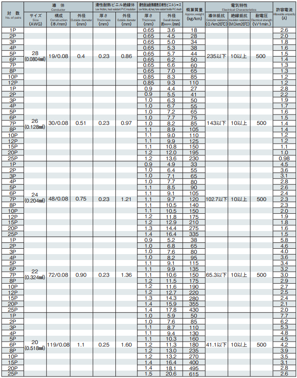 TAIYO太阳电线/信号电缆/补偿导线/机器人用电源/TLM-SB/20276 LF